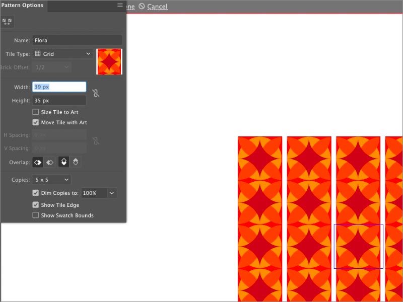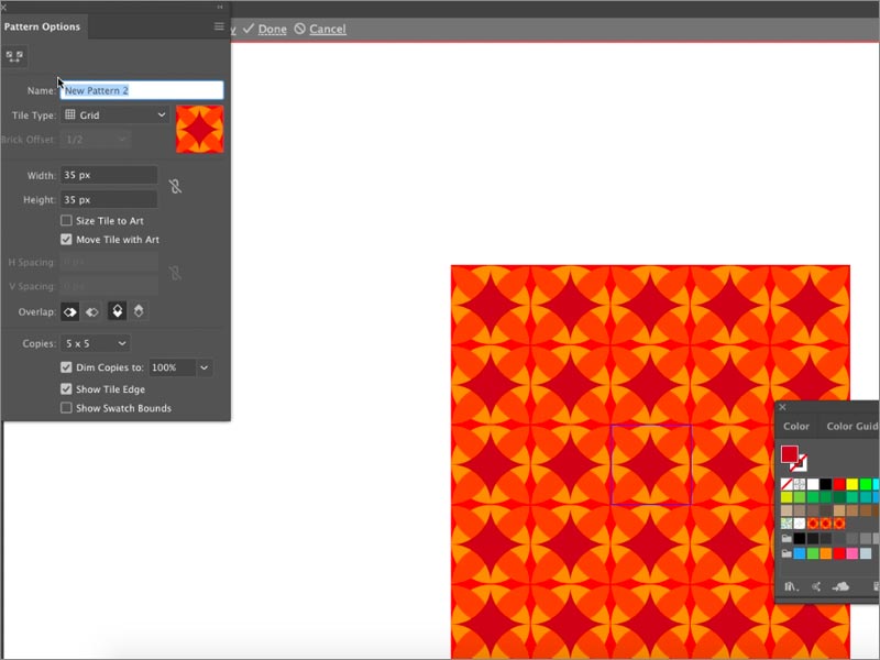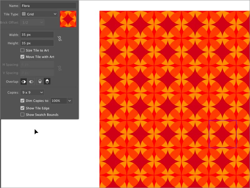 通過選擇此選項,您的屏幕將顯示已重復(fù)創(chuàng)建圖案的圖案的單位部分。