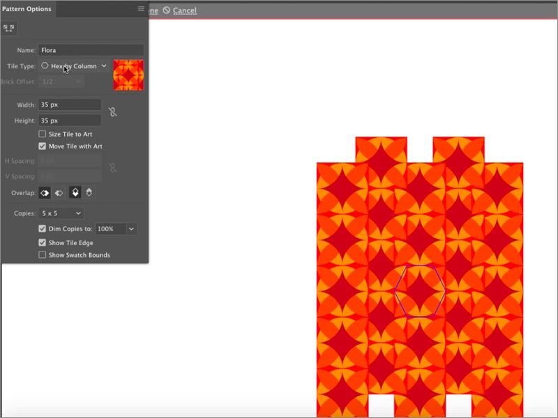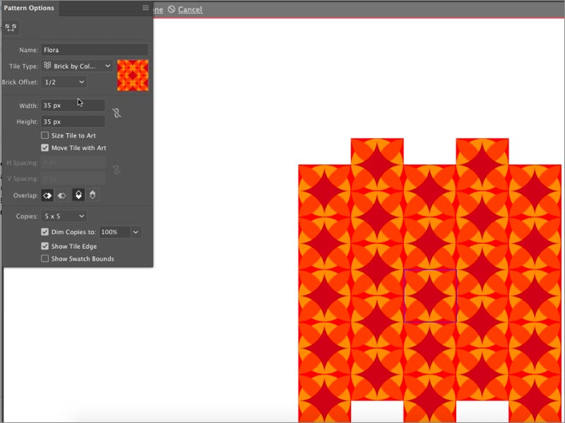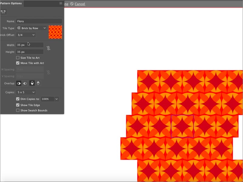 雖然此步驟是可選的,但建議您為模式提供新名稱,以防止出現(xiàn)任何混淆。如果您已經(jīng)擁有模式的現(xiàn)有名稱,您也可以選擇修改它。您可以在“圖案選項”對話框中執(zhí)行此操作。此外,根據(jù)您自己的設(shè)計首選項,您可以選擇修改“圖案選項 ”對話框中的所有其他選項。這些選項包括寬度,高度,H間距,V間距,重疊,副本等。